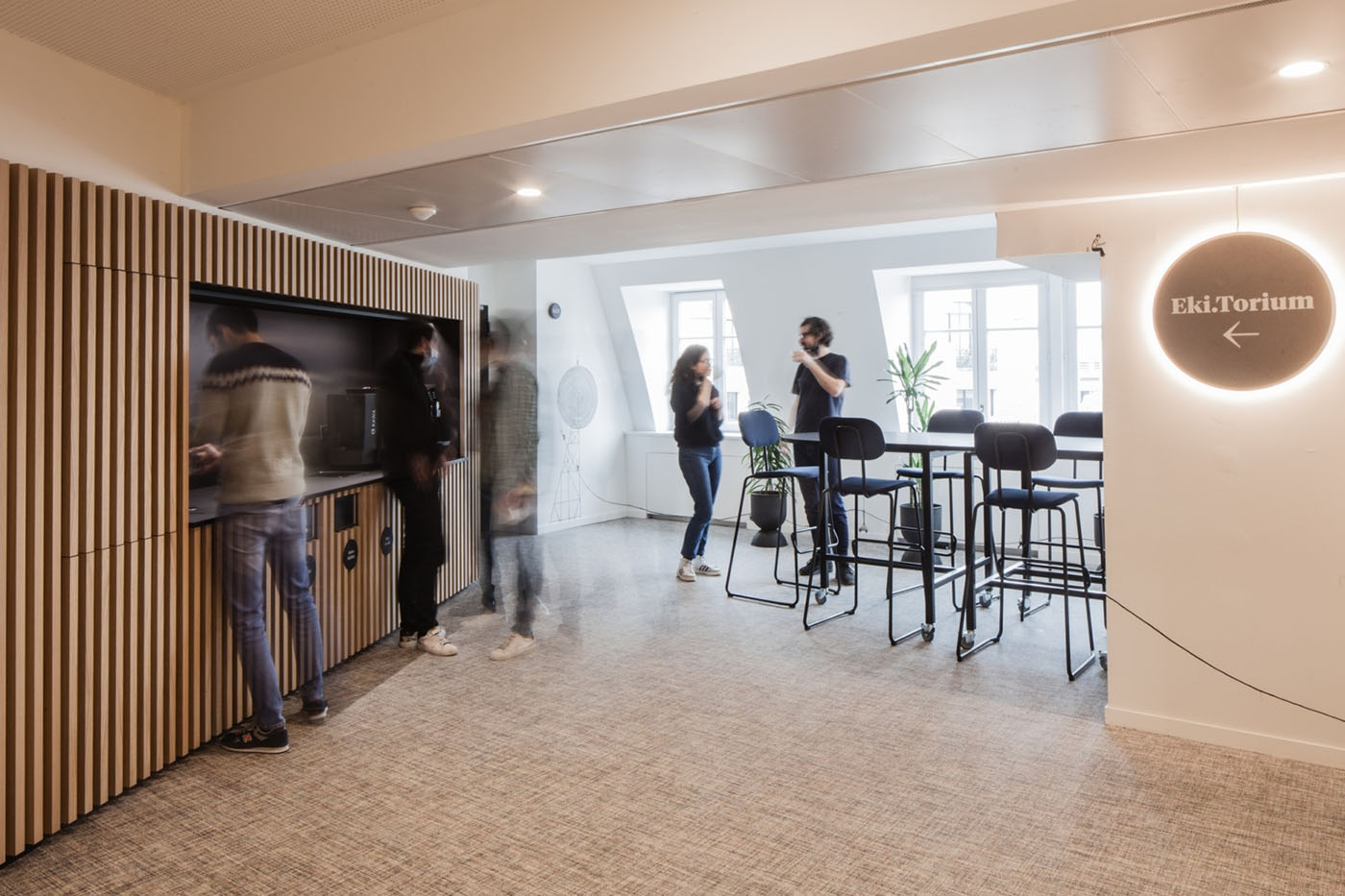 Balance is a key topic to tackle in hybridand flexible workplaces. People can conduct serious business discussions in aprivate room, then unwind and work on related tasks in the cafe bar next to the meeting room. They are having a virtual meeting just prior. And after that, they can physically show up for a group project at work to interact with colleagues.